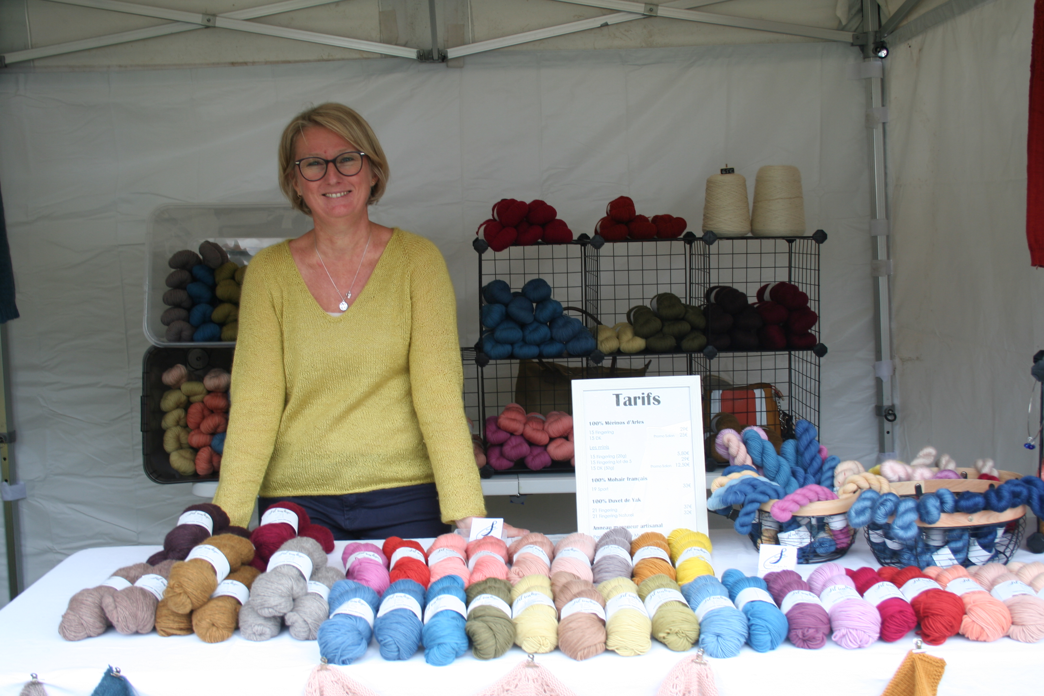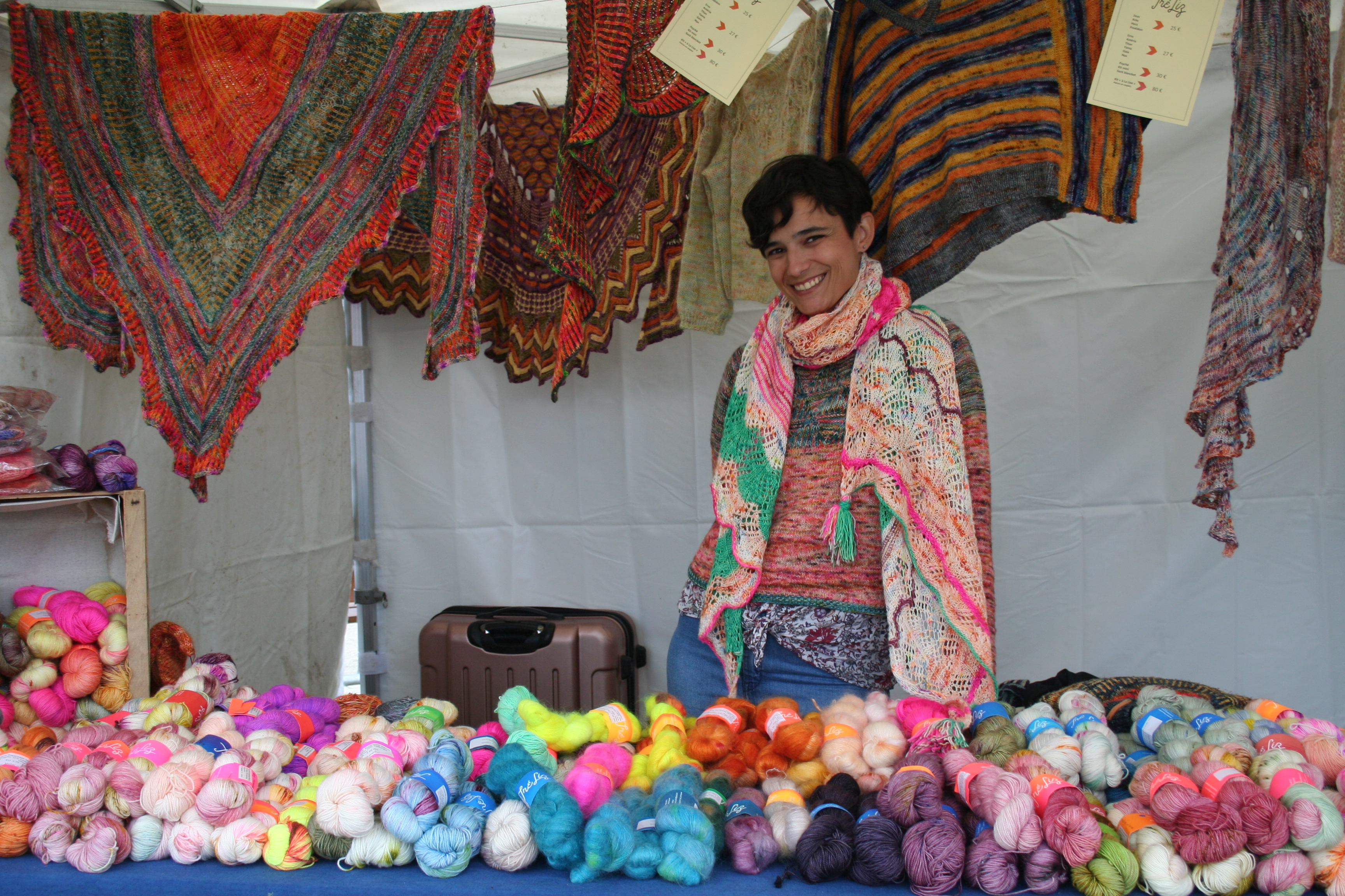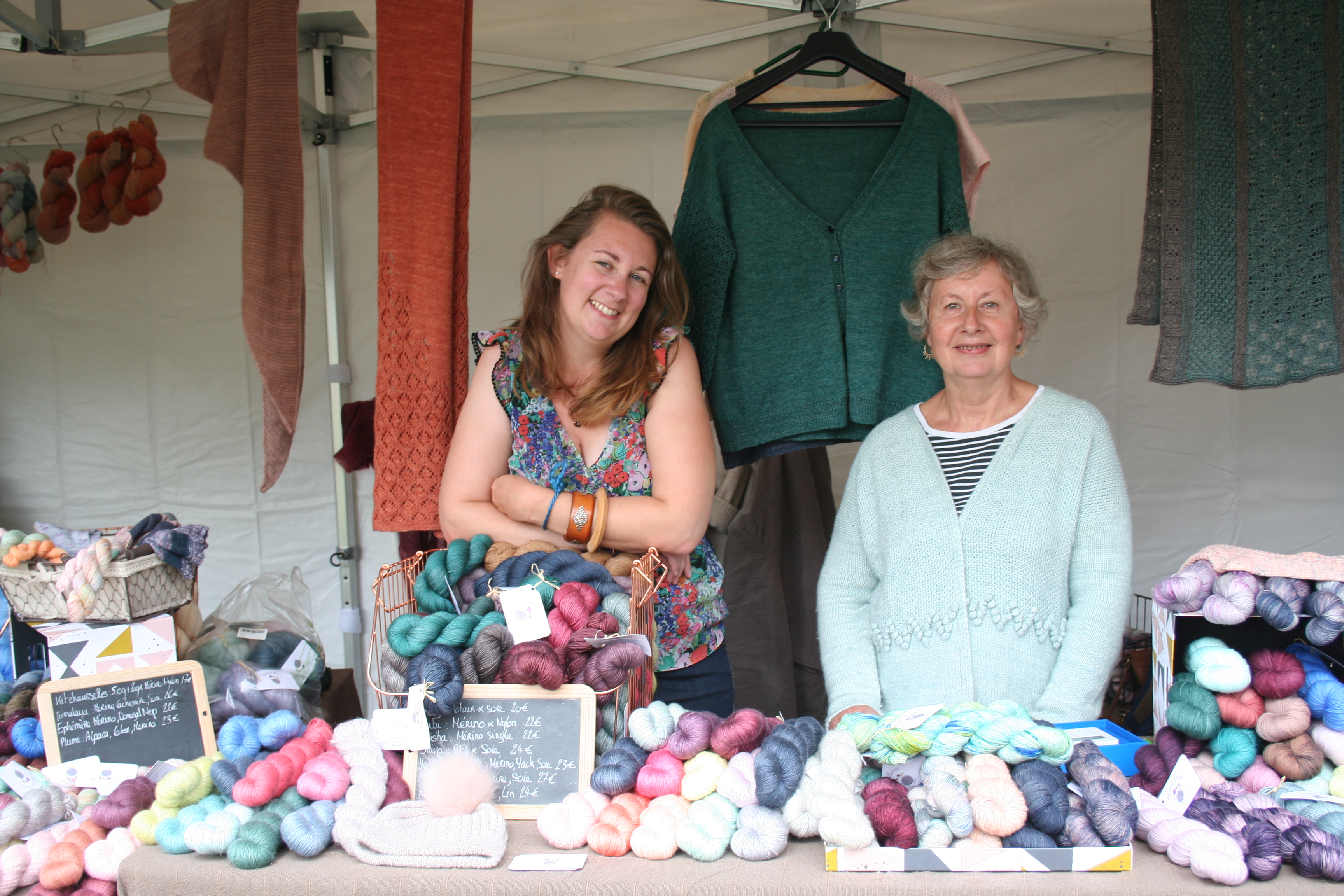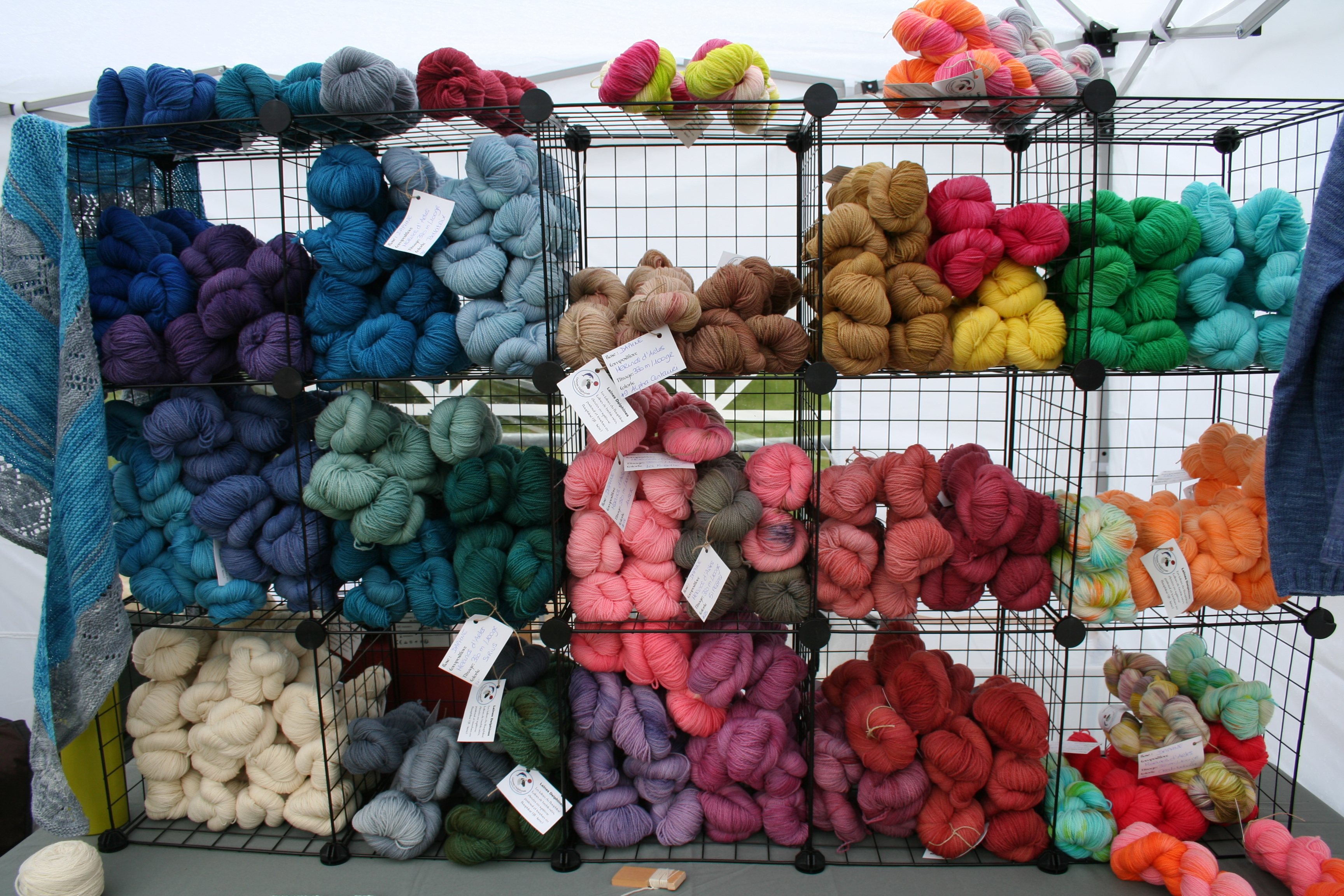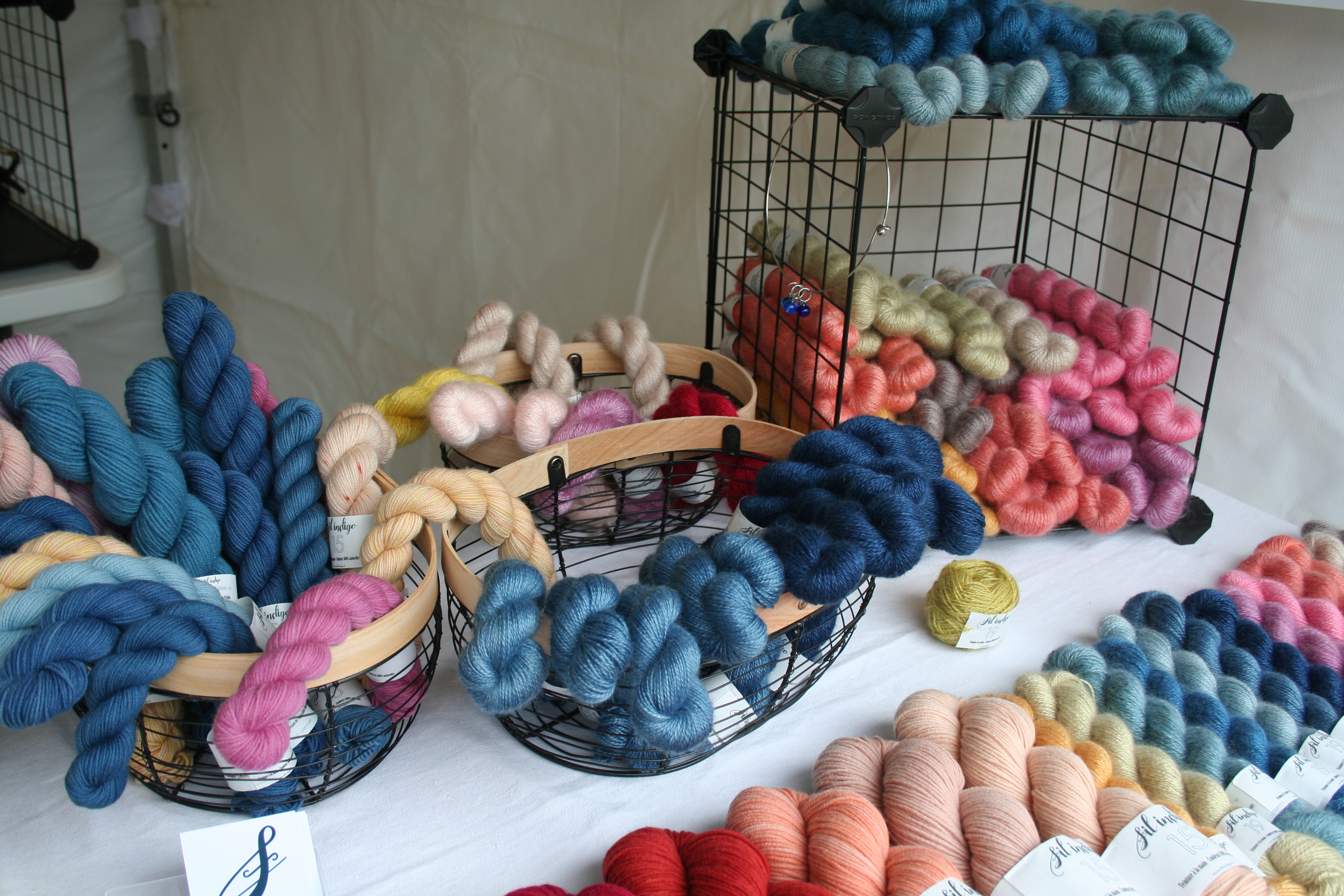 Pour ce qui concerne la partie exposition-vente, Nous avons regroupé des exposants locaux et lointains, connus et moins connus, des teintures végétales et acides, du tricot, du crochet, du filage, du feutre, des accessoires, des fils animaux et végétaux, du design. Bref, le panel était large.