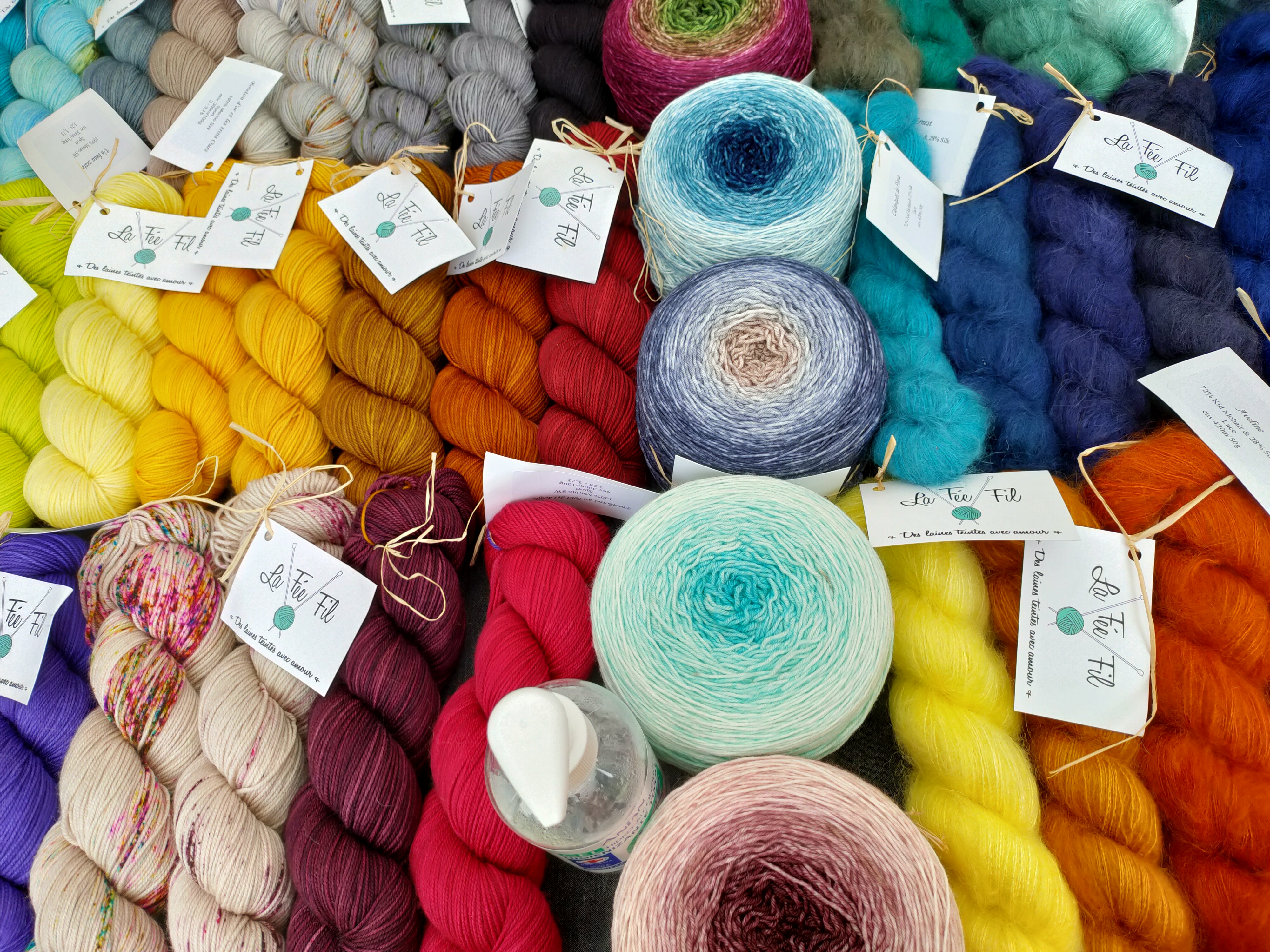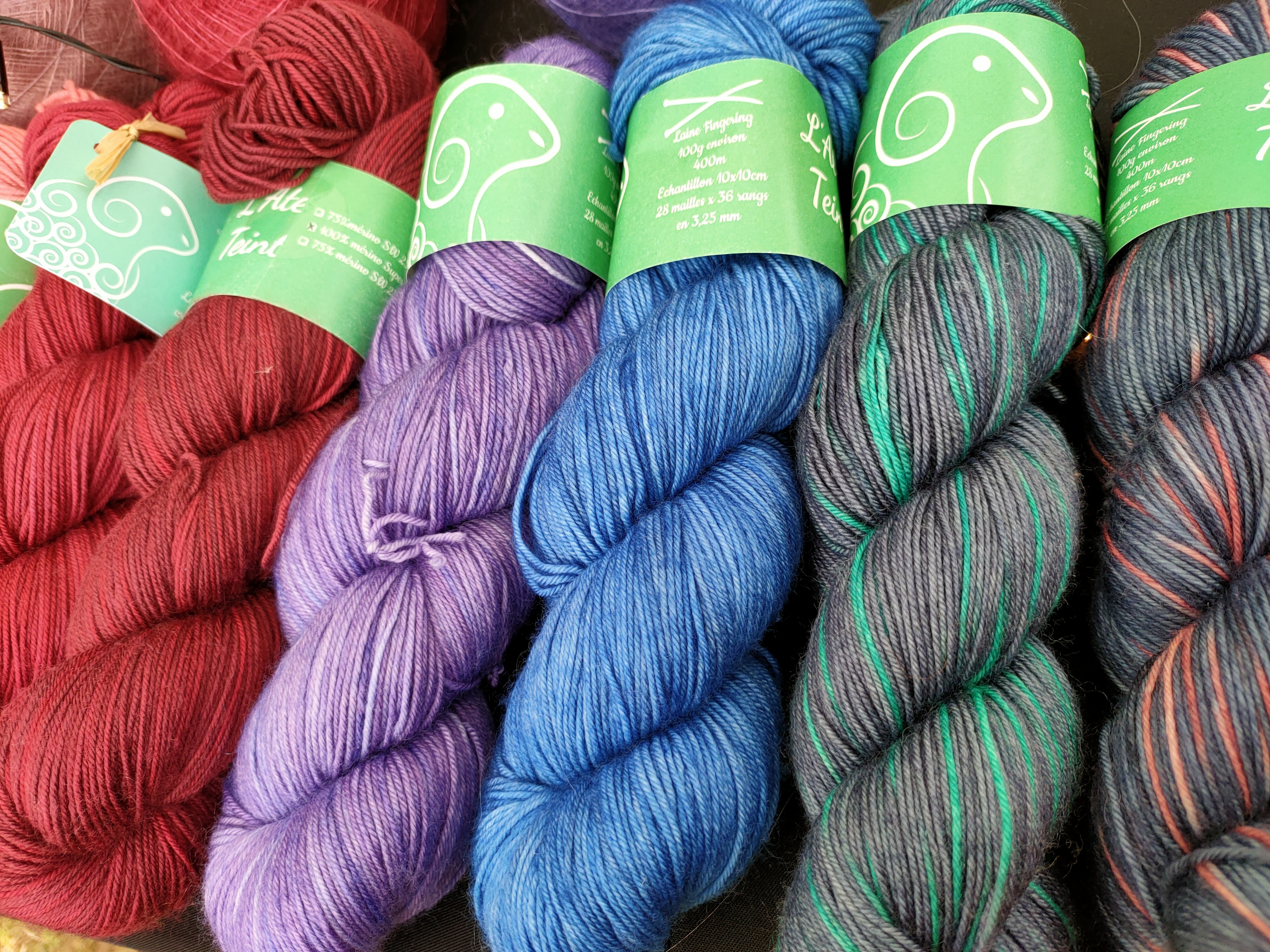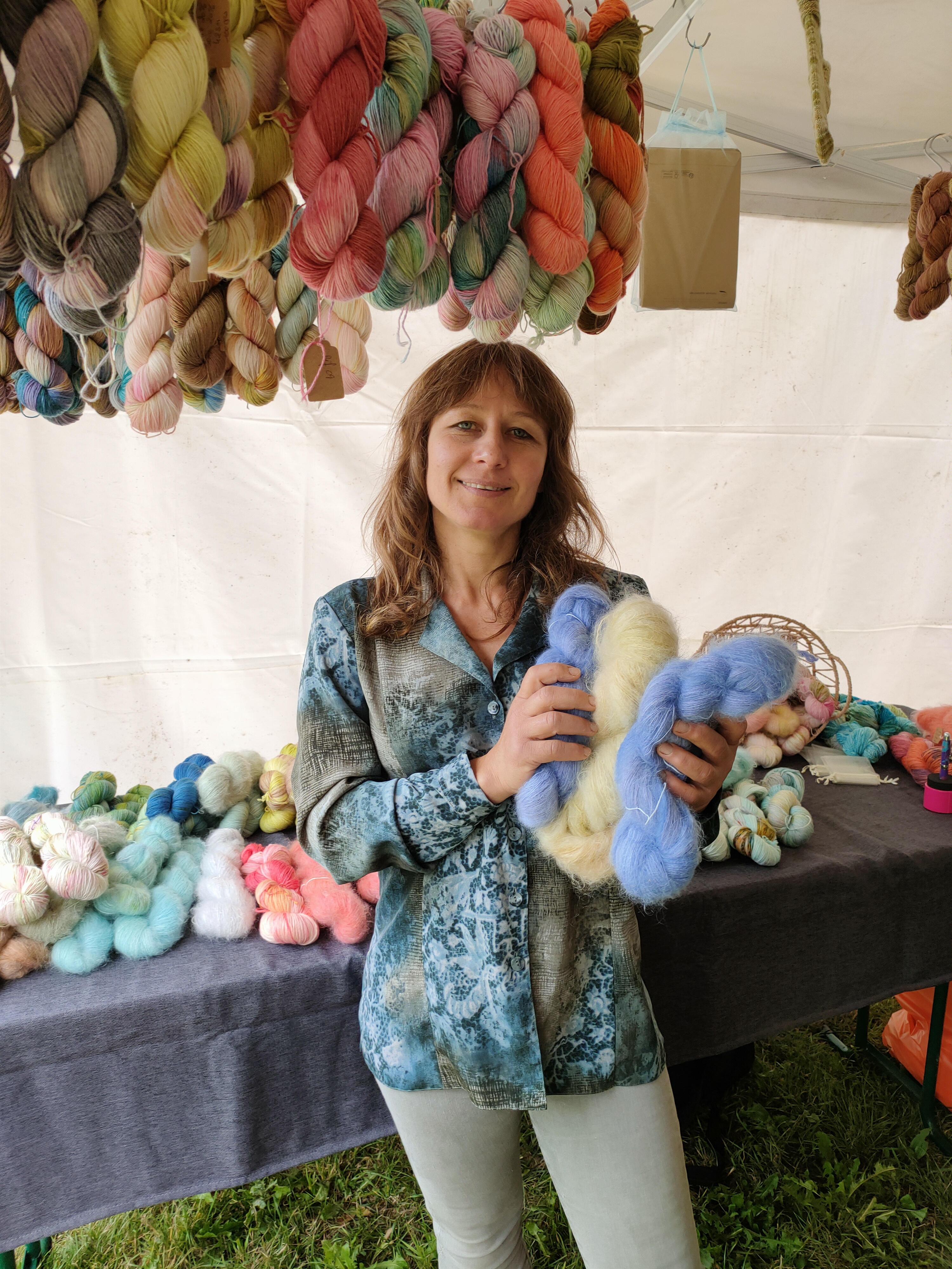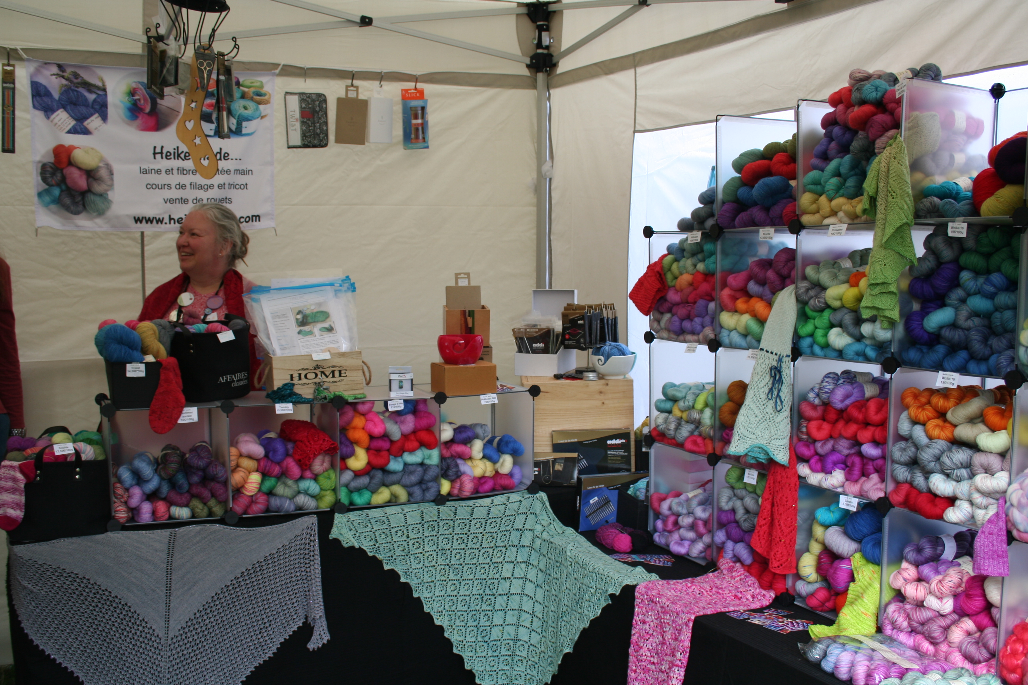 Pour ce qui concerne la partie exposition-vente, Nous avons regroupé des exposants locaux et lointains, connus et moins connus, des teintures végétales et acides, du tricot, du crochet, du filage, du feutre, des accessoires, des fils animaux et végétaux, du design. Bref, le panel était large.