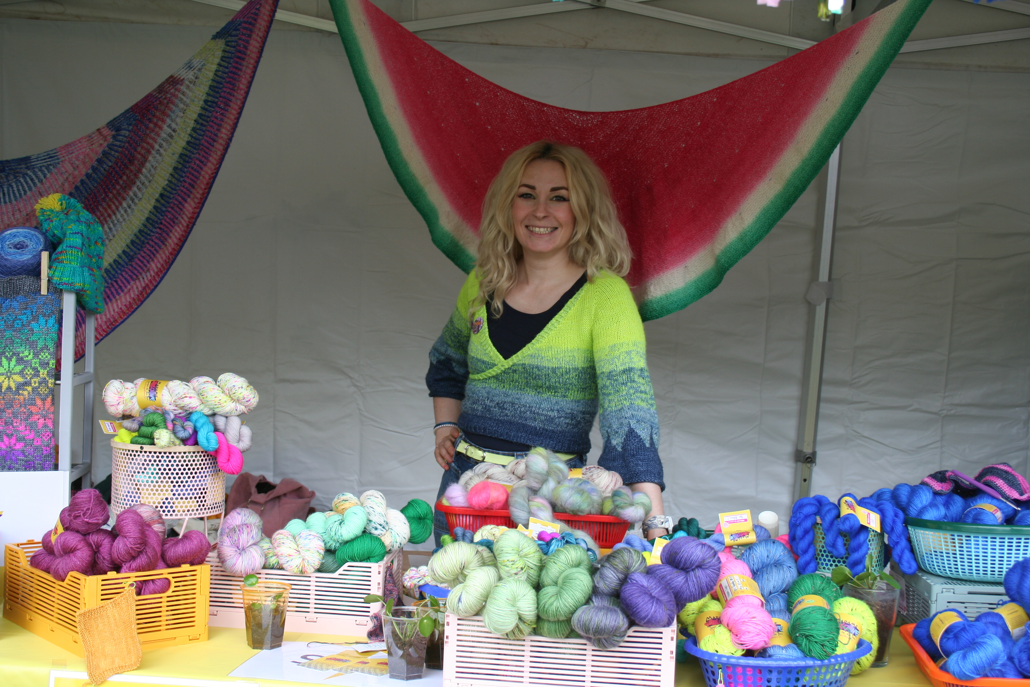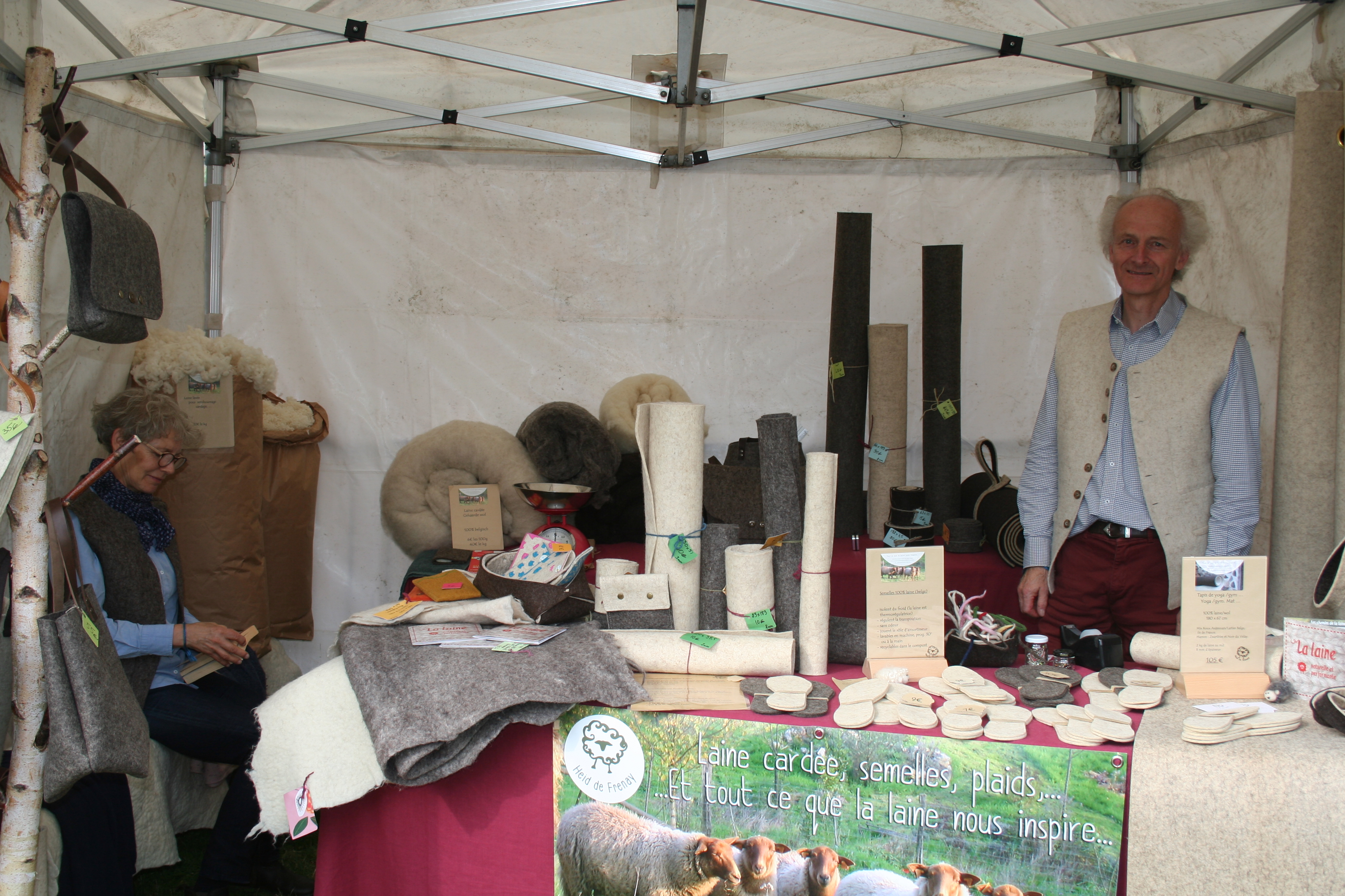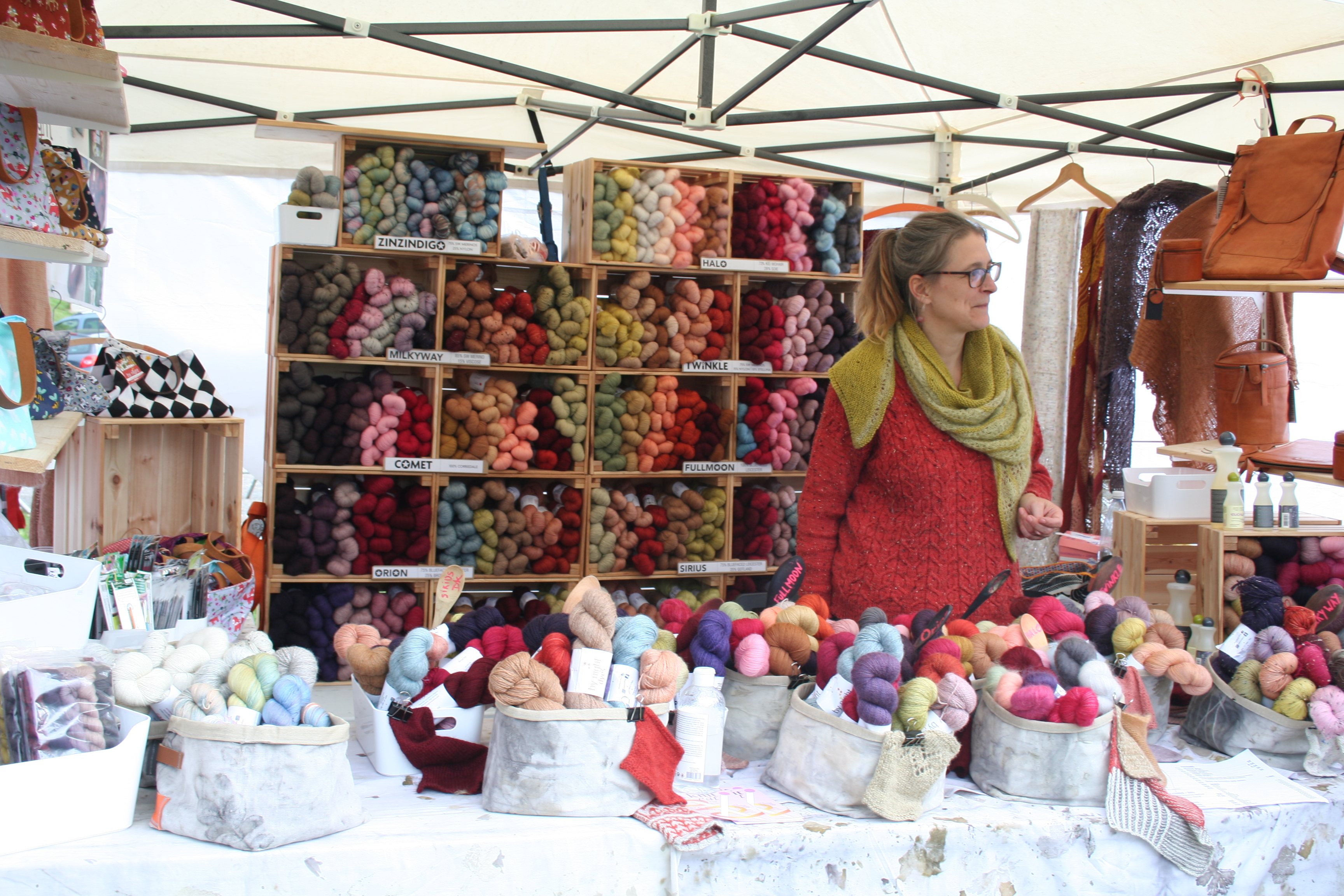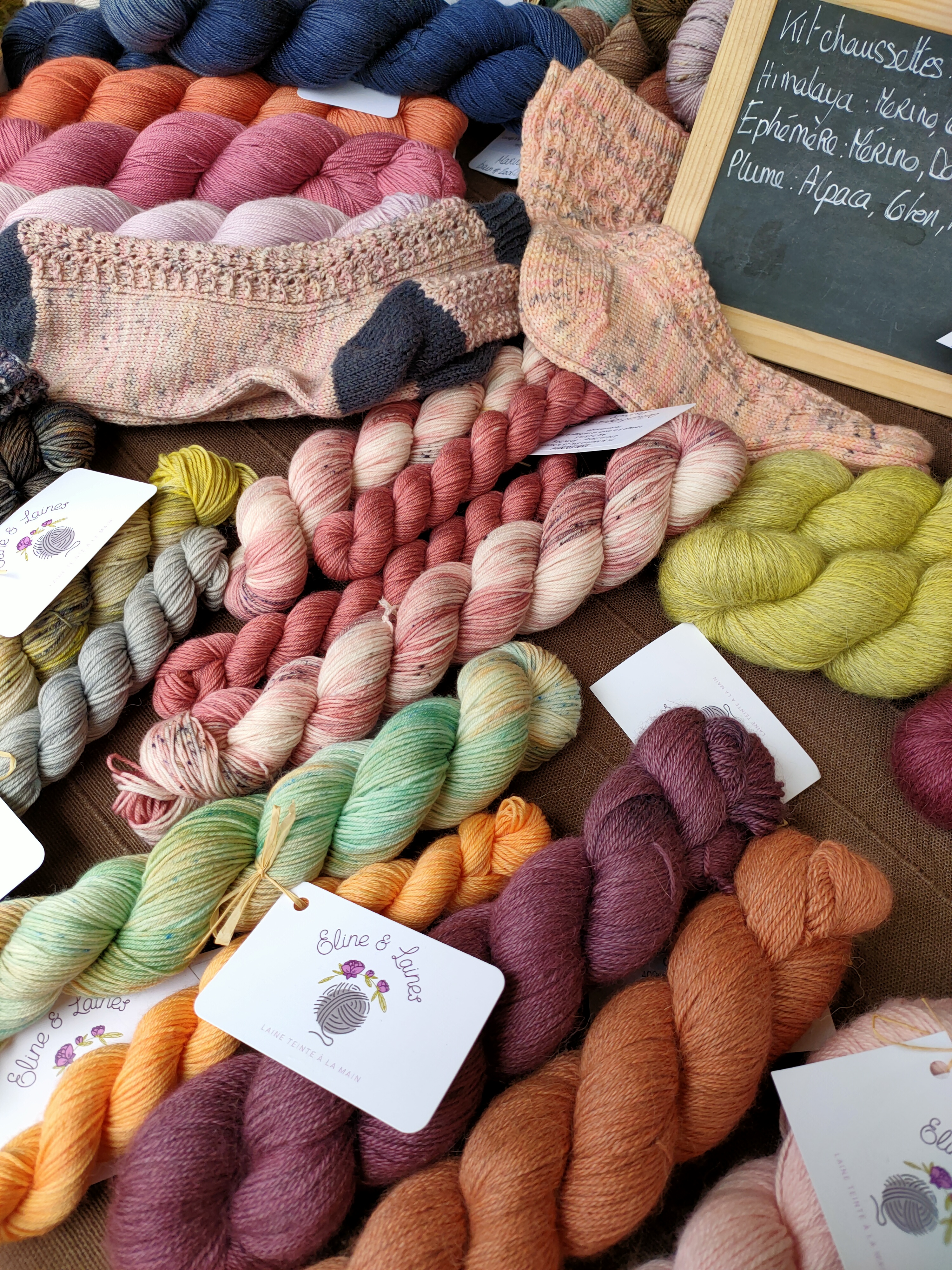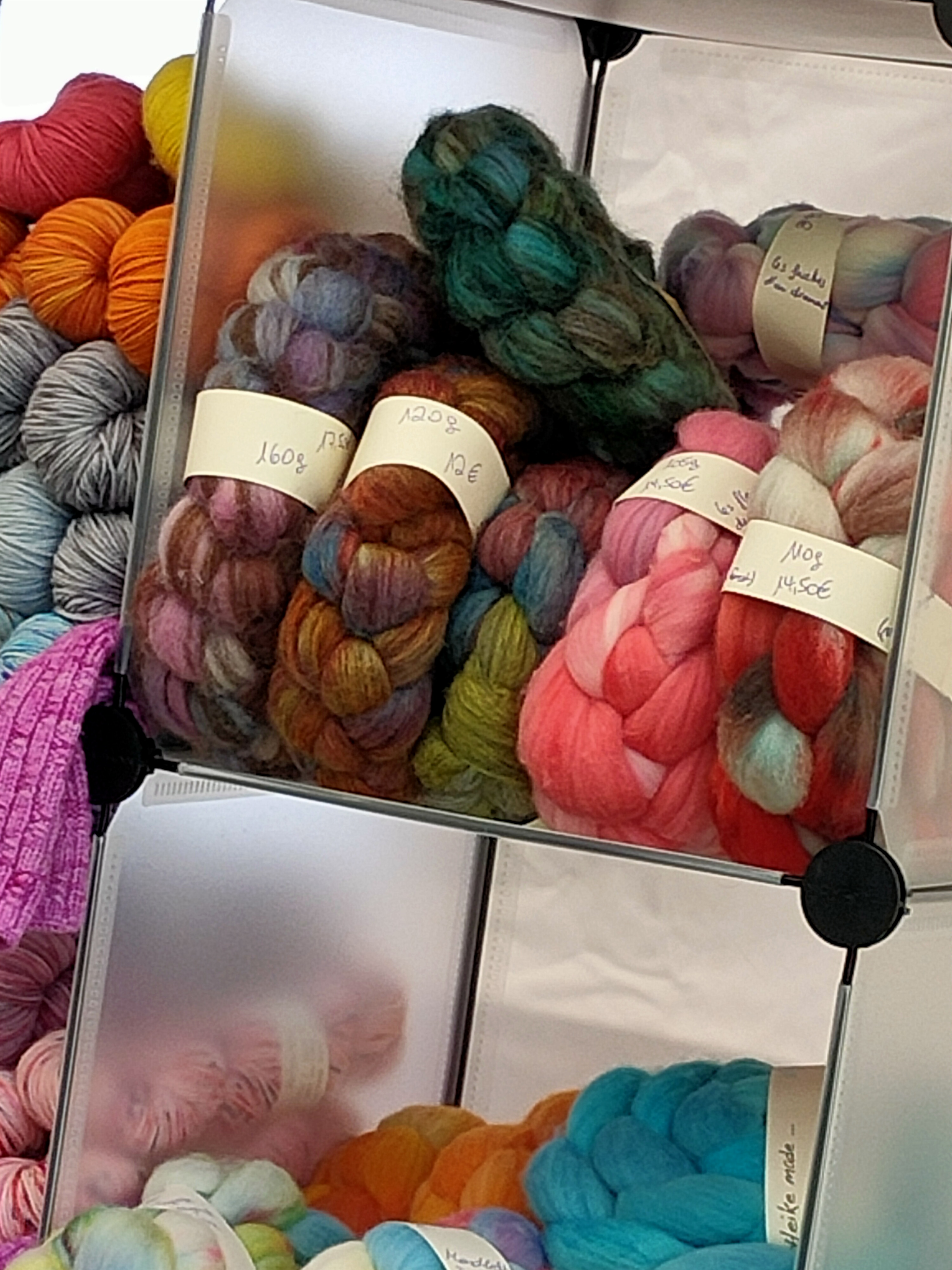 Pour ce qui concerne la partie exposition-vente, Nous avons regroupé des exposants locaux et lointains, connus et moins connus, des teintures végétales et acides, du tricot, du crochet, du filage, du feutre, des accessoires, des fils animaux et végétaux, du design. Bref, le panel était large.