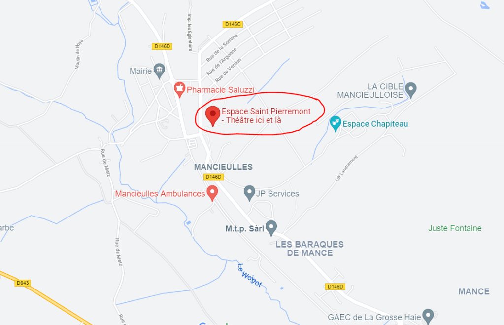 Il se déroulera à l’espace culturel St Pierremont, 11 Rue du Parc, Mancieulles, 54790 Val de Briey. Il ne sera pas possible de boire ou de se restaurer dans l’enceinte du festival. Néanmoins, un food truck sera présent le samedi sur le site et un restaurant est ouvert dans le village les deux jours ( à 300m près de la pharmacie sur le plan ).
