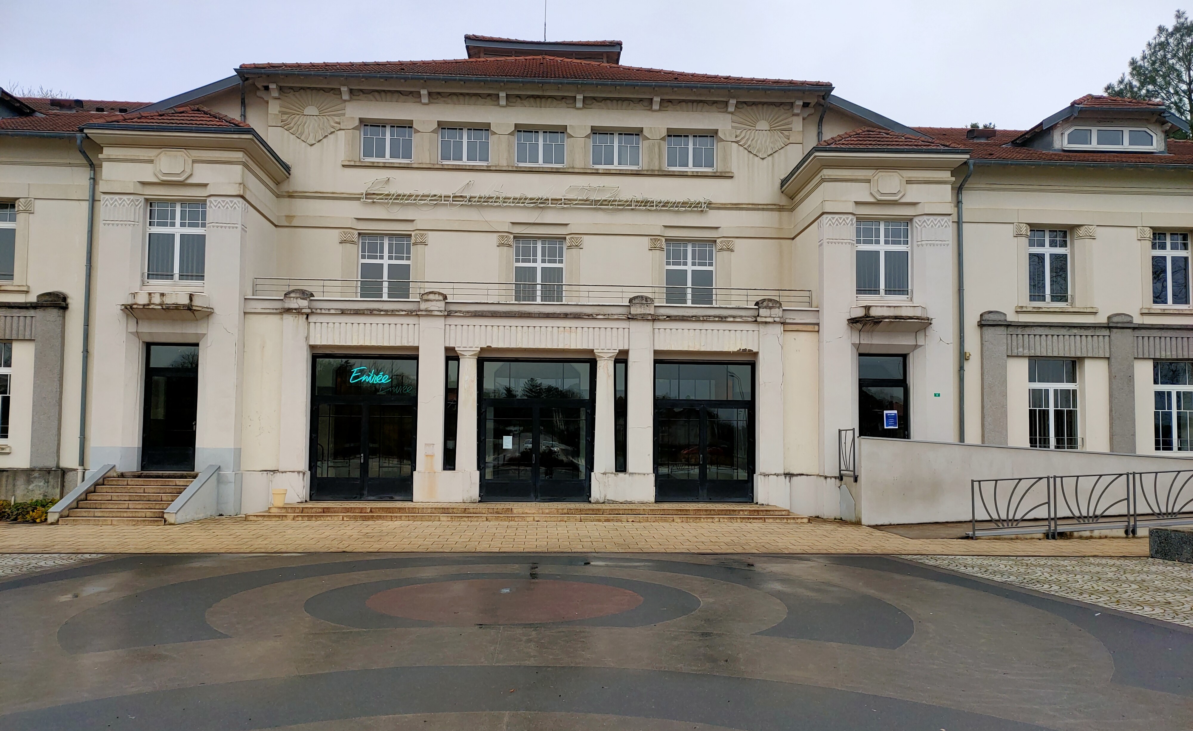 L’entrée visiteur s’effectue par la grande porte vitrée la plus à gauche sur la photo ( celle signalée par un néon sur la photo).