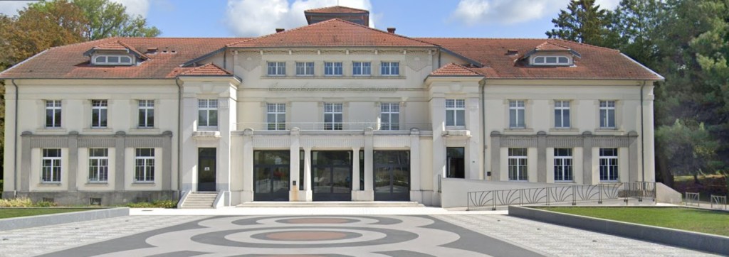 L’entrée visiteur s’effectue par la grande porte vitrée la plus à gauche sur la photo ( elles paraissent noires à cause du soleil lorrain) mais il y a un panneau qui la signale, pas d’inquiétude.